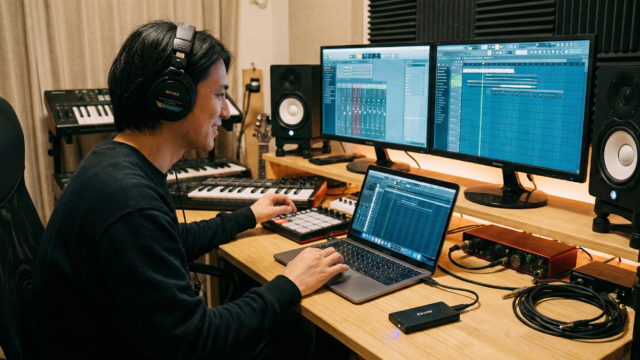 DTMは音楽経験なしでも余裕で始められます!初心者が最初に知っておきたいDAWの選び方から、MIDIキーボードやオーディオインターフェイスの必要性、おすすめのモニター環境(ヘッドホン)まで、無駄のない機材の揃え方を解説します。